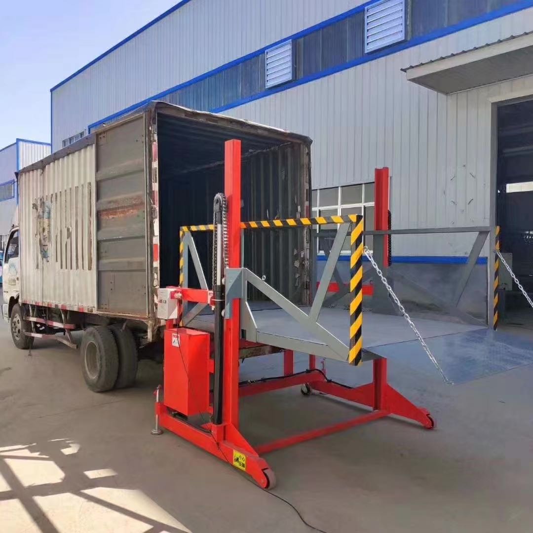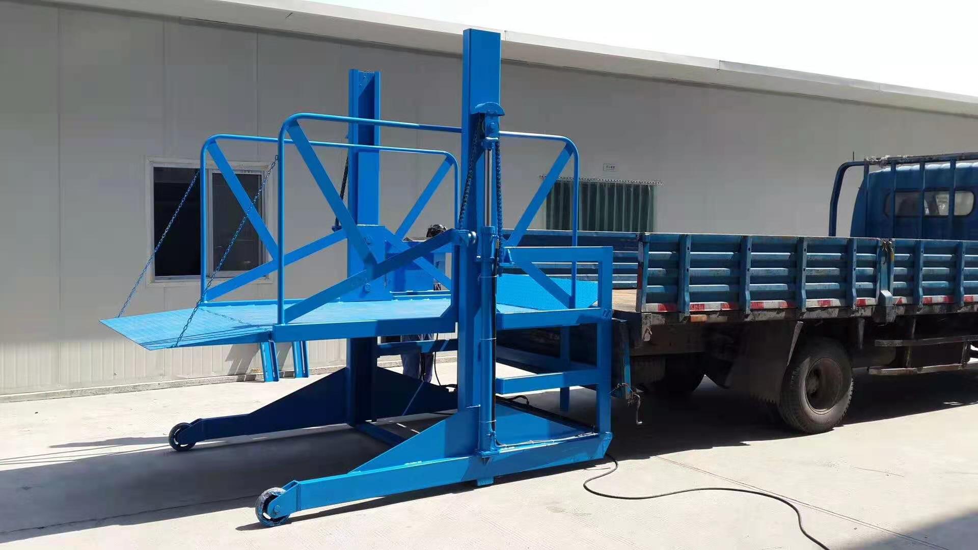 移動式裝卸貨平臺用于配合貨車裝卸貨物。設(shè)備上的翻板對接貨車尾部,可以提升2噸的貨物,底部輪子移動行走, 屬于流動式的登車橋,大大利用工廠實(shí)際使用空間,提高裝卸貨的效率,減少人工成本。