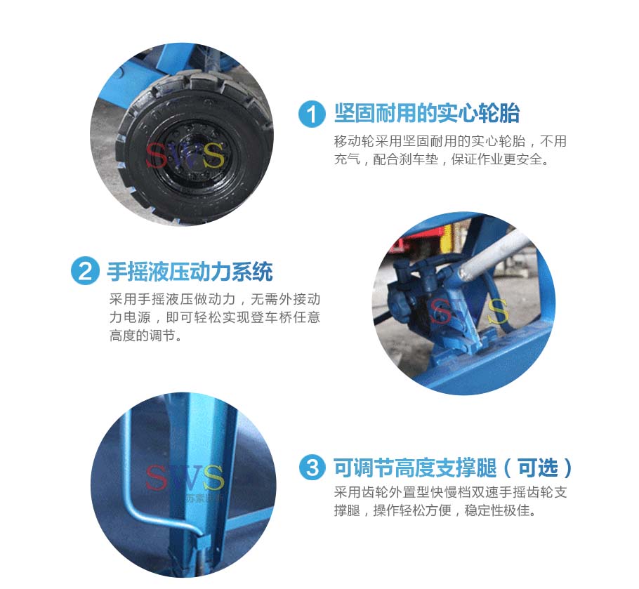 采用人工液壓動(dòng)力,勿須外接動(dòng)力電源即可輕松實(shí)現(xiàn)登車(chē)橋的高度調(diào)節(jié)。