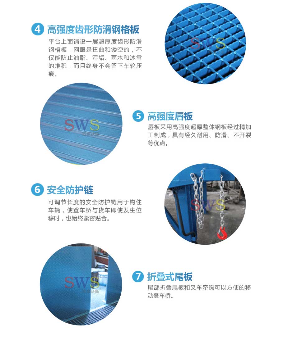 5. 橋體與集裝箱連接處有帶掛鉤的鏈條,使汽車(chē)和登車(chē)橋緊密連接,保證工作時(shí)的安全可靠性。