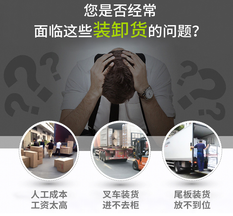 產(chǎn)品用途:配合叉車(chē)、搬運(yùn)車(chē),從貨柜或貨車(chē)快速批量裝卸貨